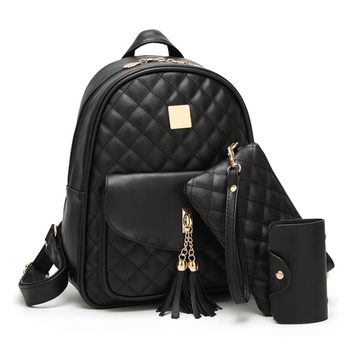 تصميم جديد فاخر شعرية الجلود مجموعة حقيبة ظهر ، مخصص بو السيدات الترفيه شرابات حقيبة الظهر حقيبة مع محفظة صغيرة
